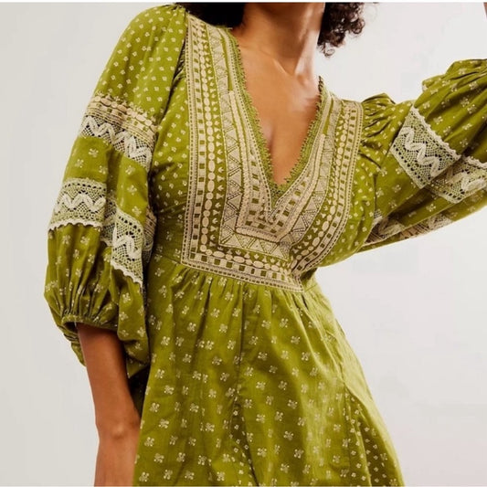 NWOT SIZE S Free People Green Wrap Tunic with Relaxed Bohemian Style