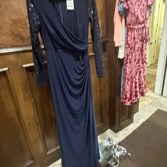 NWT SIZE 8 Eliza J Blue Ruched Wrap Long Sleeve Gown