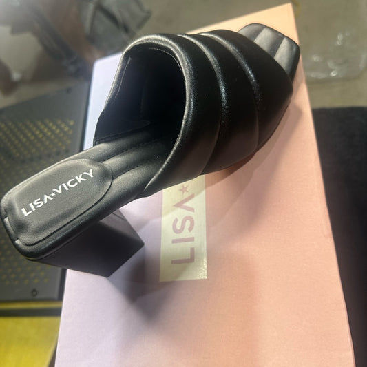 189. NEW SIZE 8M Black Ruched Leather Mules with Block Heel