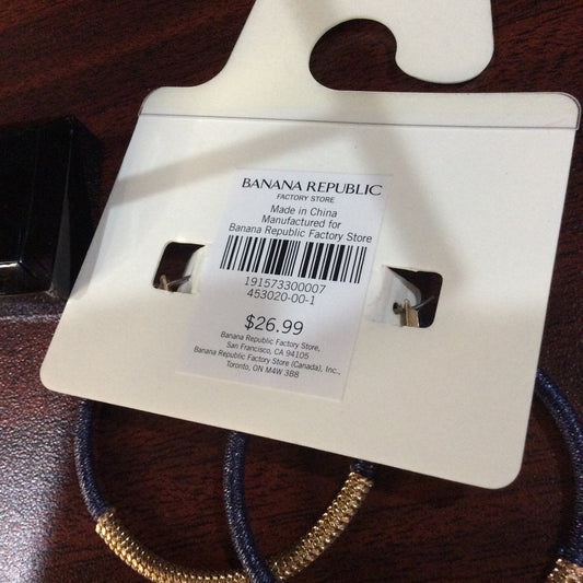 Banana Republic Blue and Gold Textured Hoop Earrings