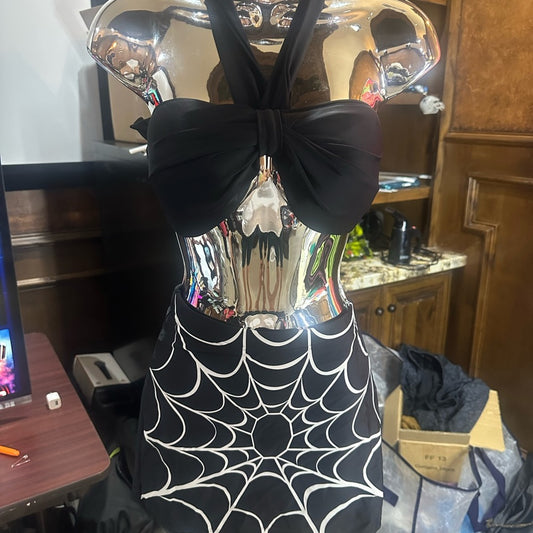 SIZE M Unique Vintage Black and White Mini Pencil Swim Skirt
