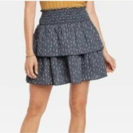 NWOT SIZE S/M Hayden Blue Gray Ruffled Tie Front Midi Skirt