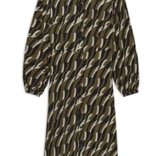 SIZE S Green and Brown Tiered Bishop Sleeve Sundress