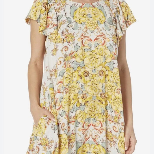 NWOT SIZE S/P Free People Yellow and White Ruffled Flutter Sleeve Sundress