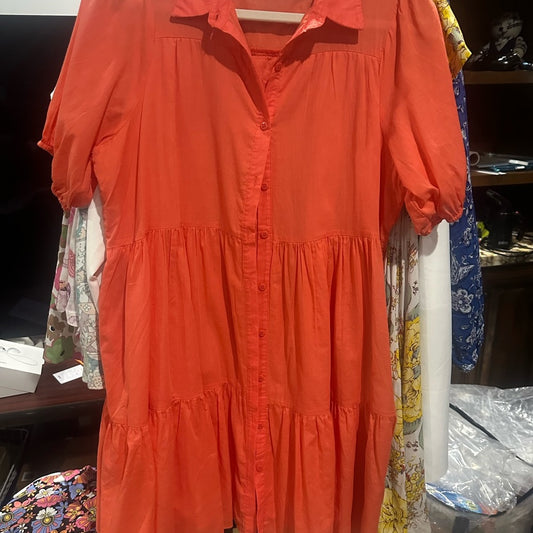 NWOT SIZE L HYFVE Orange and Pink Puff Sleeve Asymmetrical Sundress