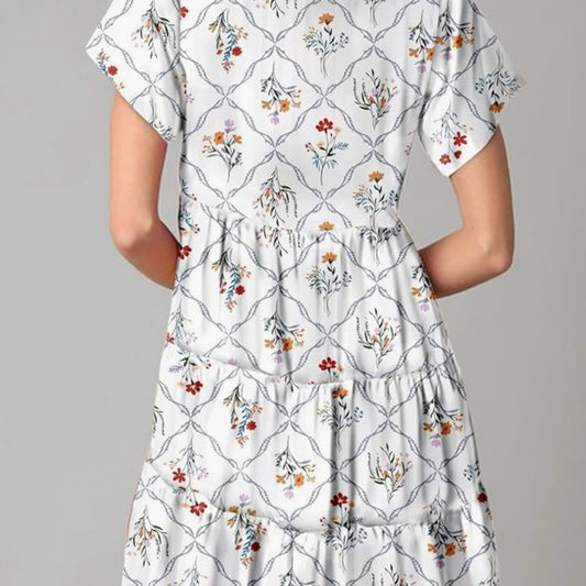 SIZE S White V-Neck Short Sleeve Midi Sundress