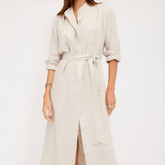 SIZE XL Fifteen Twenty Tan Cream Mandarin Collar Shirt Dress