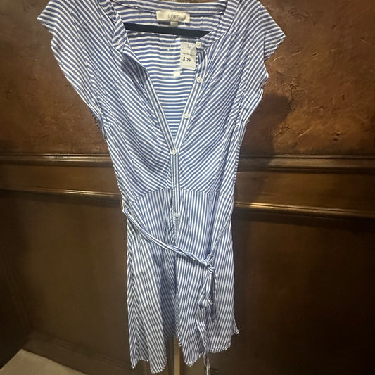 SIZE 6 LOFT Blue and White Mini Sundress with Crew Neck and Flutter Cap Sleeves