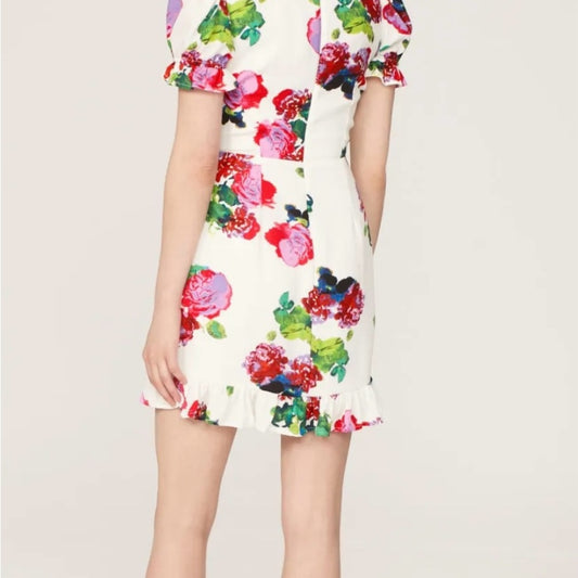 SIZE 4 Ashley By 26 International Red and Green Ruffled Mini Dress