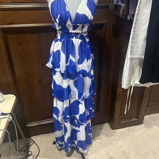 NWT SIZE XS Express Blue and White Tiered Ruffled Maxi Sundress