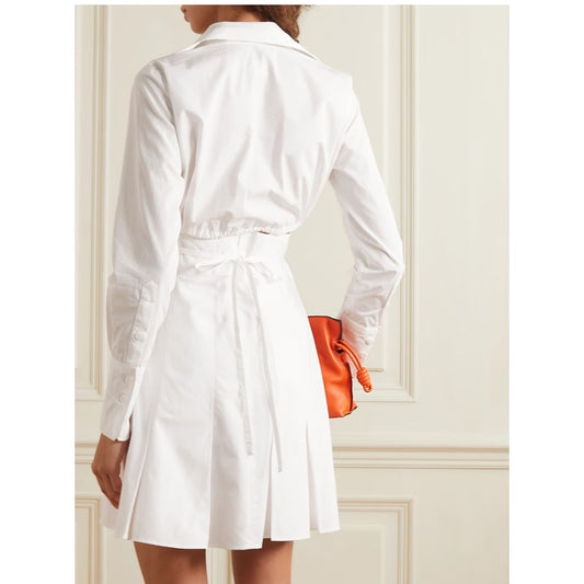 SIZE M White Long Sleeve Wrap Dress with Notched Collar