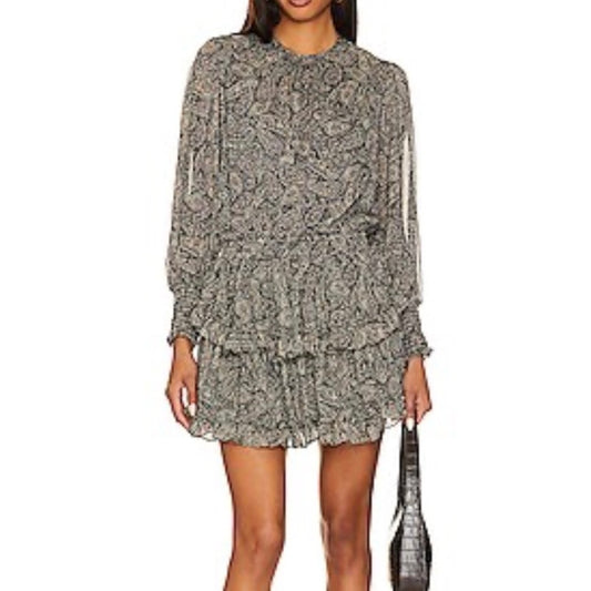 NWT SIZE XS/S Misa Los Angeles Black and Gold Tiered Ruffled Sundress