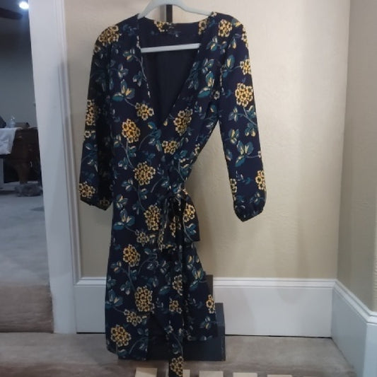 Size small J. Crew Blue Wrap Dress with Bishop Sleeves and V-Neck