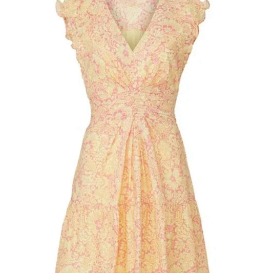 Derek Lam Orange and Pink Midi Dress with Flutter Sleeves