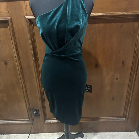 NWT SIZE XS Lulu's One-Shoulder Deep Green Velvet Dress