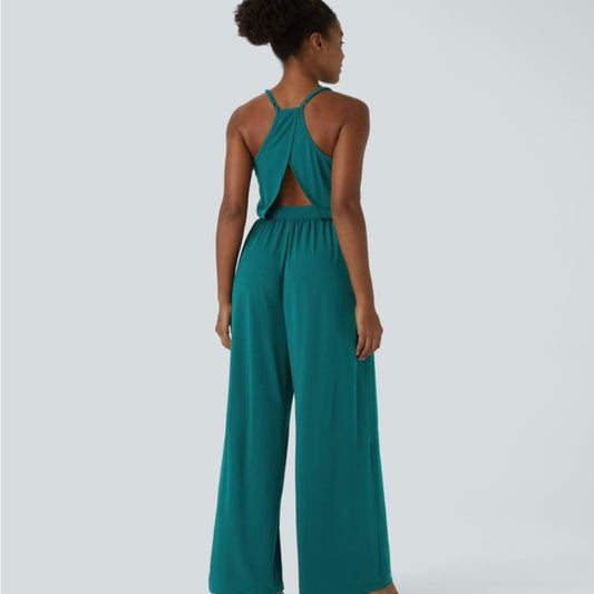 NWOT SIZE XL HALARA Green Jumpsuit with Elegant Wide-Leg Design