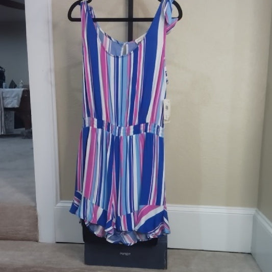NWT SIZE XL BeBop Blue and Pink Striped Romper Casual Summer Essential