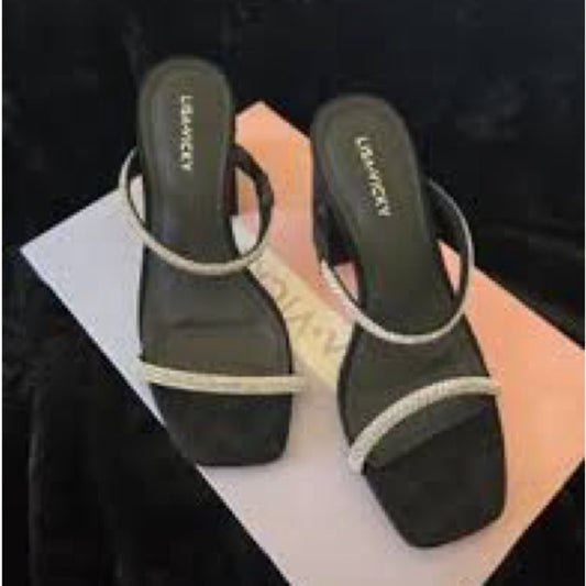 209. NEW SIZE 10 Sophisticated Black and Silver Heels with Sparkling Straps
