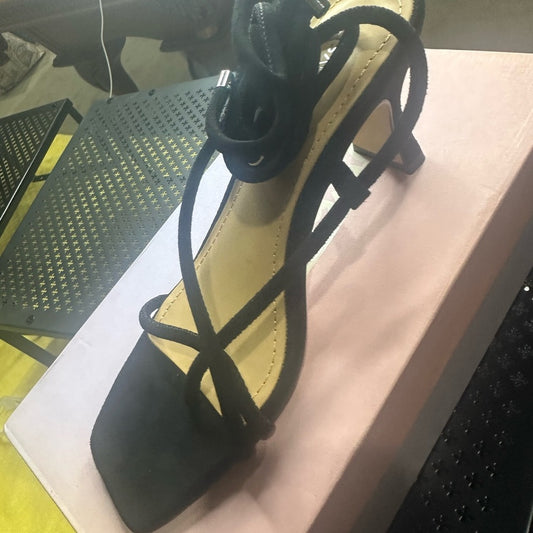 222. NEW 6.5 Black suede Strappy Lace-Up Heels with Kitten Heel