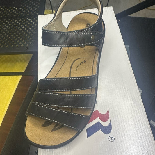 250. NEW SUZE 6-6.5 Romika Black Sandals with Wide Straps and Flat Sole
