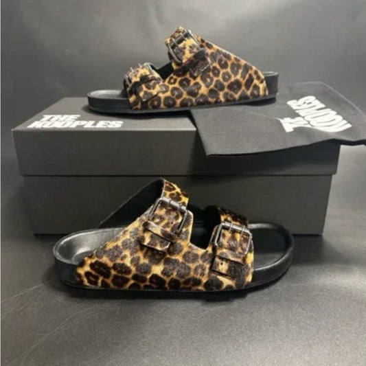 NEW SIZE 10 The Kooples Leopard Print Slide Sandals Brown and Black