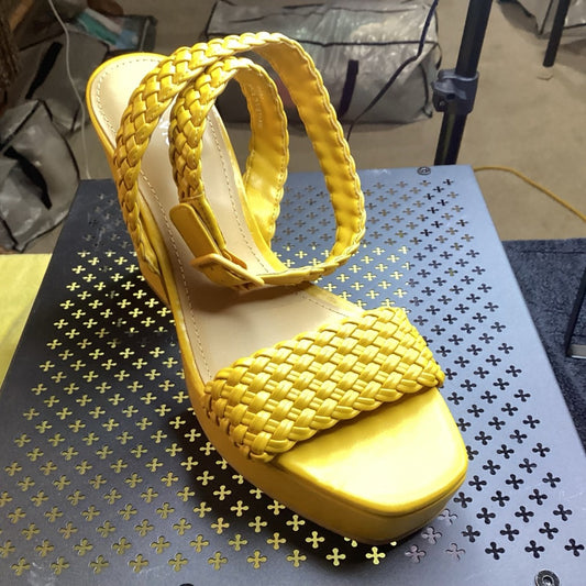 167. NEW SIZE 9.5 Yellow Block Heel Sandals with Braided Texture