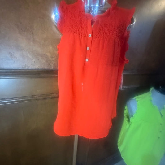 NWT SIZE S Red Smocked Cap Sleeve Polo Blouse