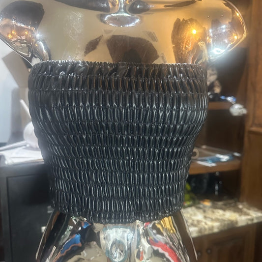 NWT SIZE XS Misa Los Angeles Black Smocked Crop Top