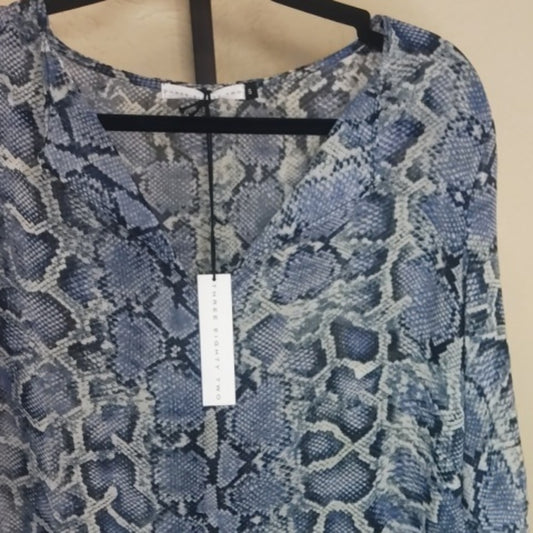 NWT SIZE S Blue and White V-Neck Dolman Sleeve Blouse