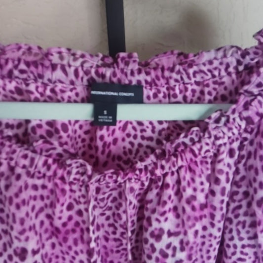 INC International Concepts Purple Ruffled Puff Sleeve Blouse