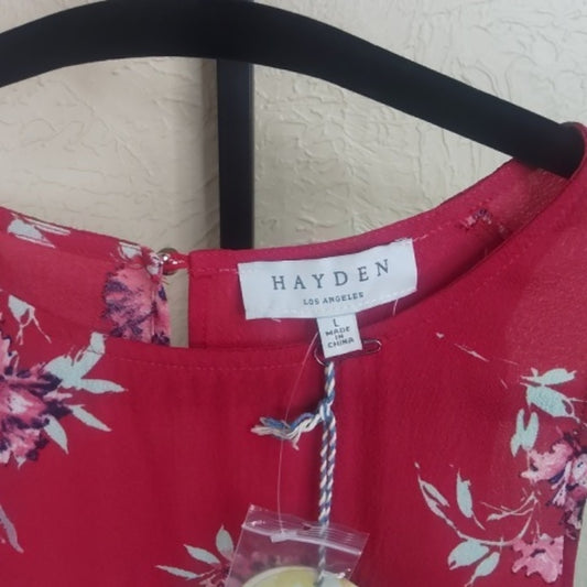 NWT SIZE L Hayden Red and Pink Blouse Vibrant Top