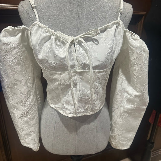 NWT SIZE L Lulu's White Off-Shoulder Blouse with Tie
