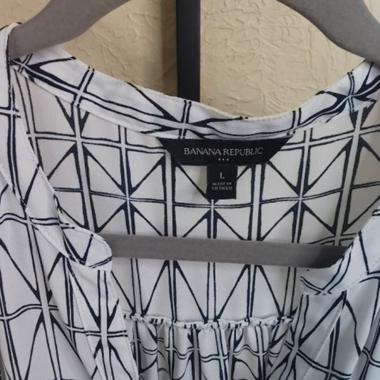 SIZE L Banana Republic Black and White Graphic Polo Blouse
