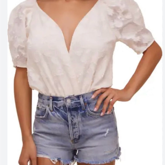SIZE S Astr Cream Plunging Puff Sleeve Bodysuit