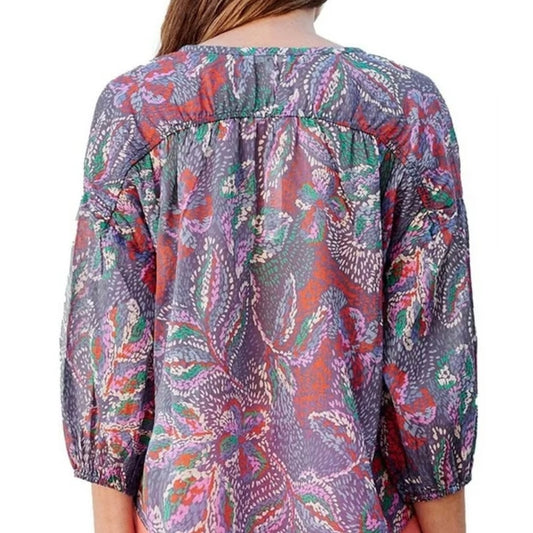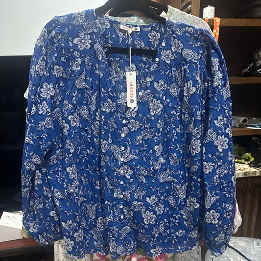 NWT SIZE L/3 Sundry Blue and White Blouse with Relaxed Fit and 3/4 Sleeves