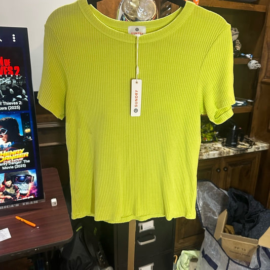 NWT SIZE L/3 Sundry Green Ribbed Short Sleeve T-Shirt