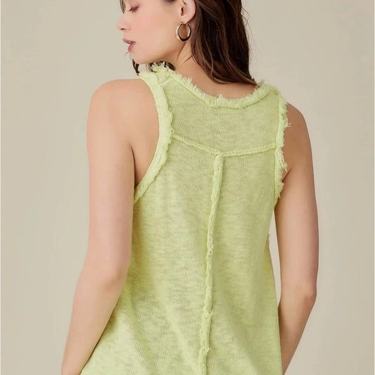 NWT SIZE S Mustard Seed Green Relaxed Ruffled Tank Top