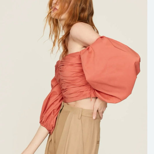 SIZE 4 Tanya Taylor Pink Off-the-Shoulder Ruched Blouse