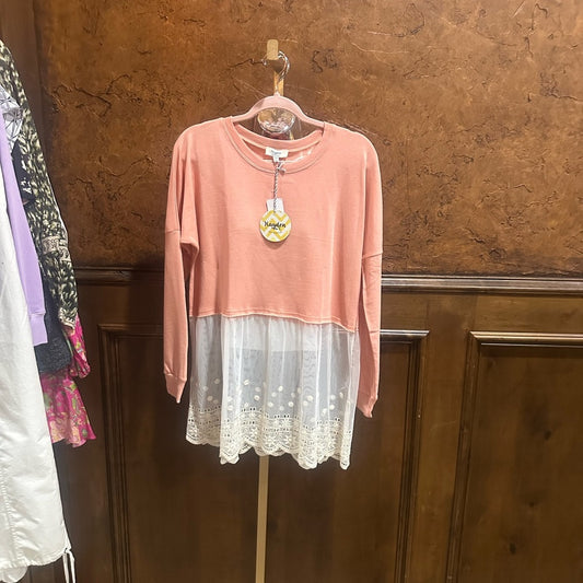 NWT SIZE M Hayden Orange Long Sleeve Embellished Crop Tunic