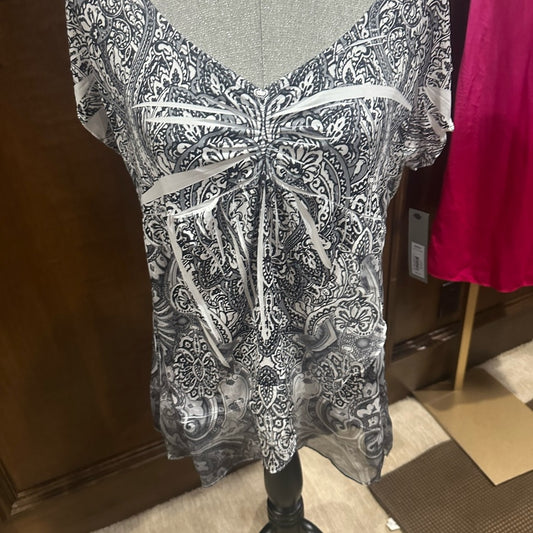 NWOT SIZE XL Apt. 9 Black and White Ruched Tie Front Blouse