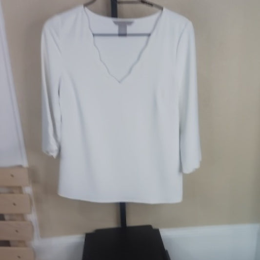 SIZE XS Stylish White Top with Scalloped Neckline