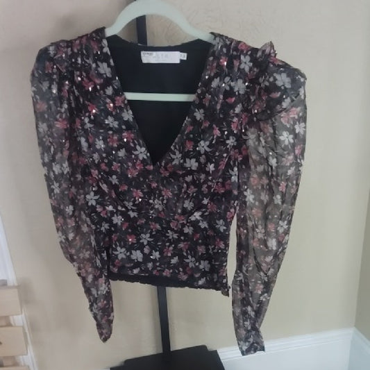 SIZE XS Floral Black and Pink Sheer Top