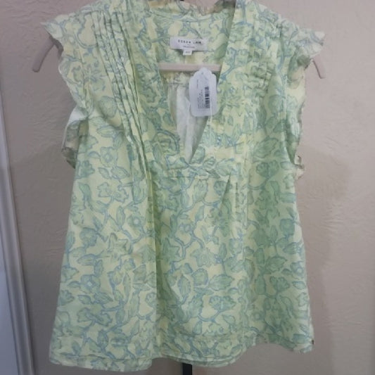Size XL Derek Lam Green Pleated Cap Sleeve Blouse