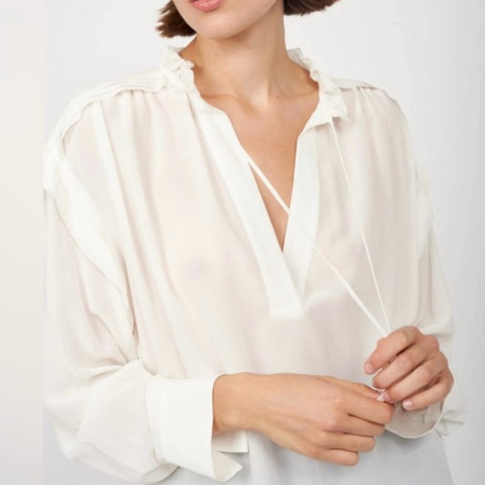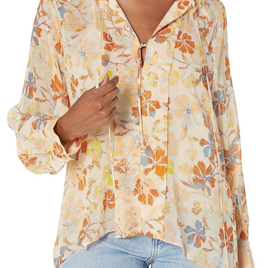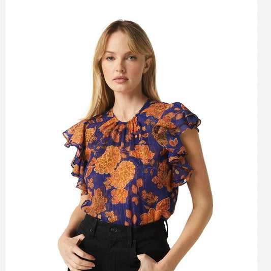 NWT SIZE XS Misa Blue and Orange Flutter Sleeve Blouse