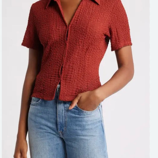 NWT SIZE Small Status Anxiety Red Ribbed Button Down Shirt