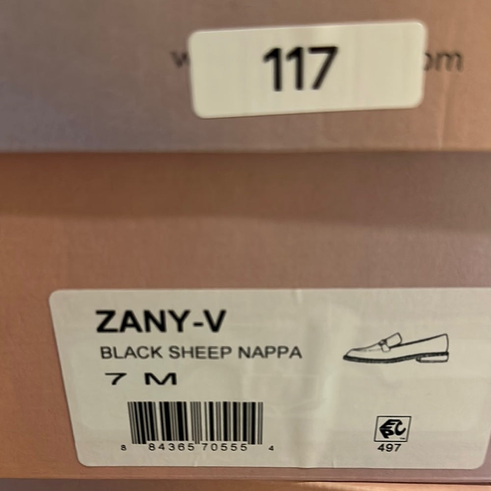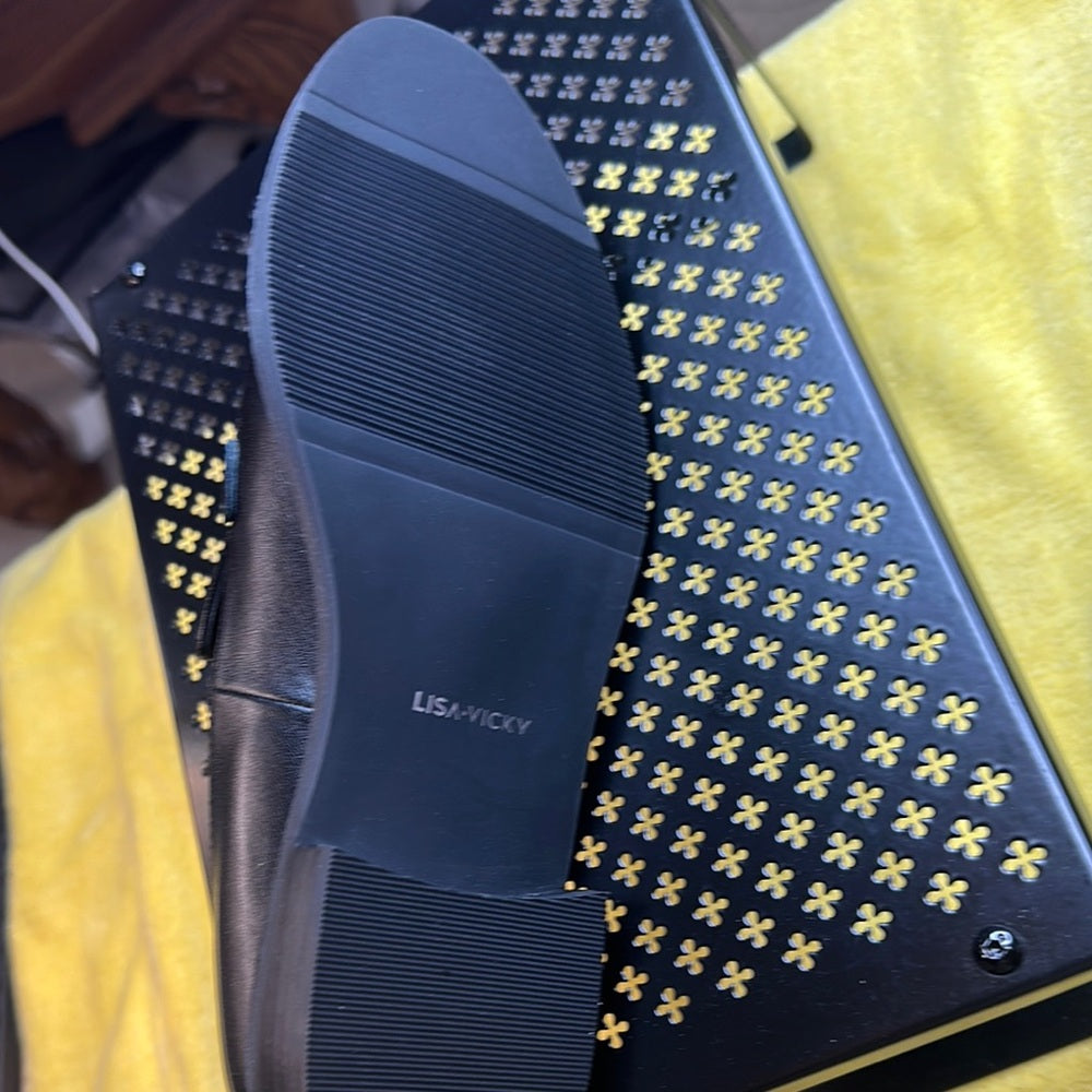 116. 117. NEW SIZE 7M Black Leather Loafers with Gold Horsebit Detail