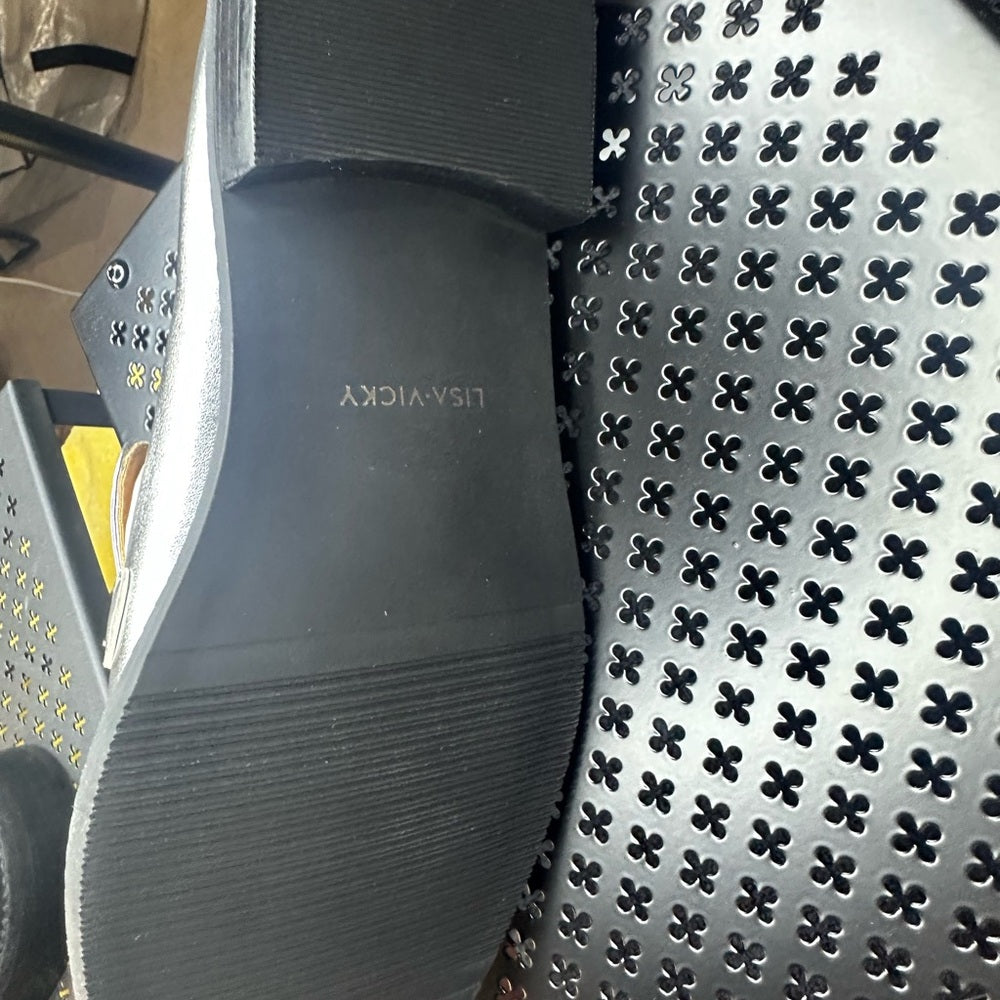 These silver metallic flats boast a sleek and traditional loafer design, enhanced by a horsebit detail across the vamp. Crafted from smooth leather, they feature a shiny, reflective finish and a comfortable low heel. The rounded toe adds to their timeless appeal, making them a stylish choice for any occasion.