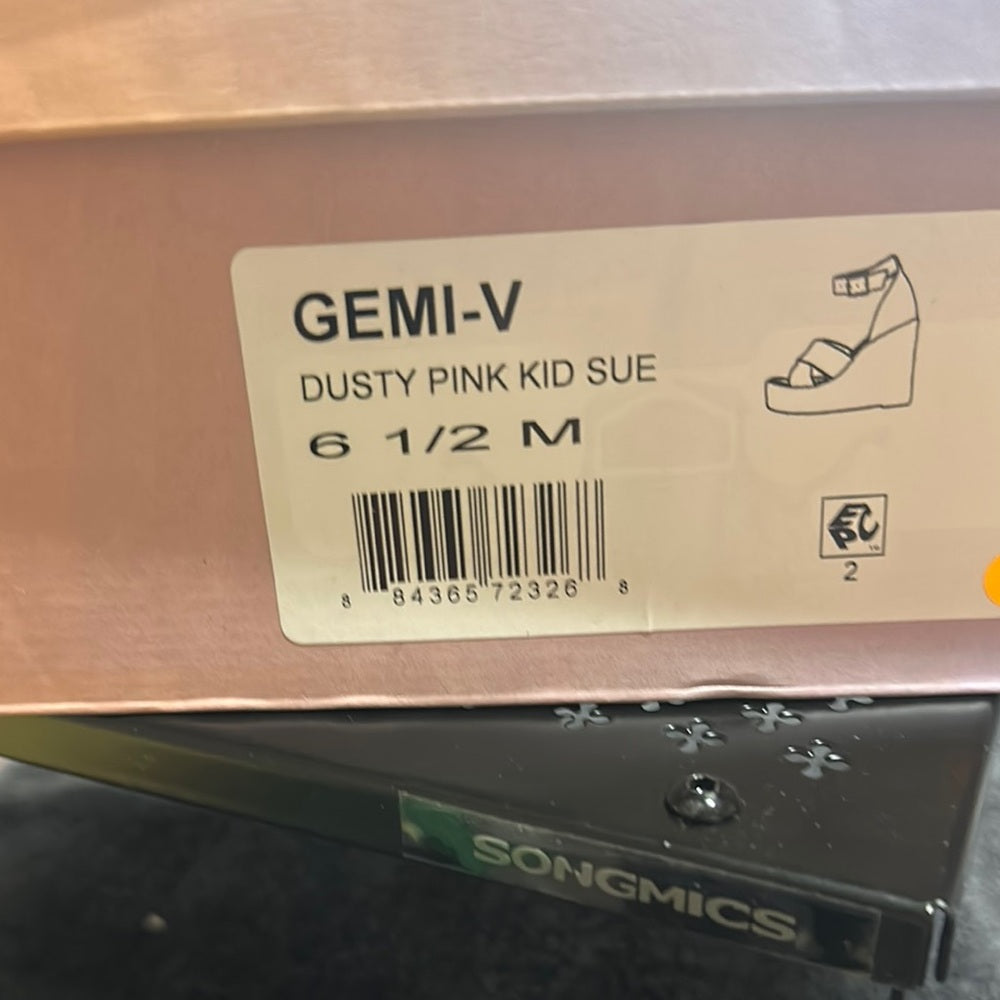178.179. NEW SIZE- 6.5/7.5 Gems-V Pink Wedge Sandals with Ankle Strap