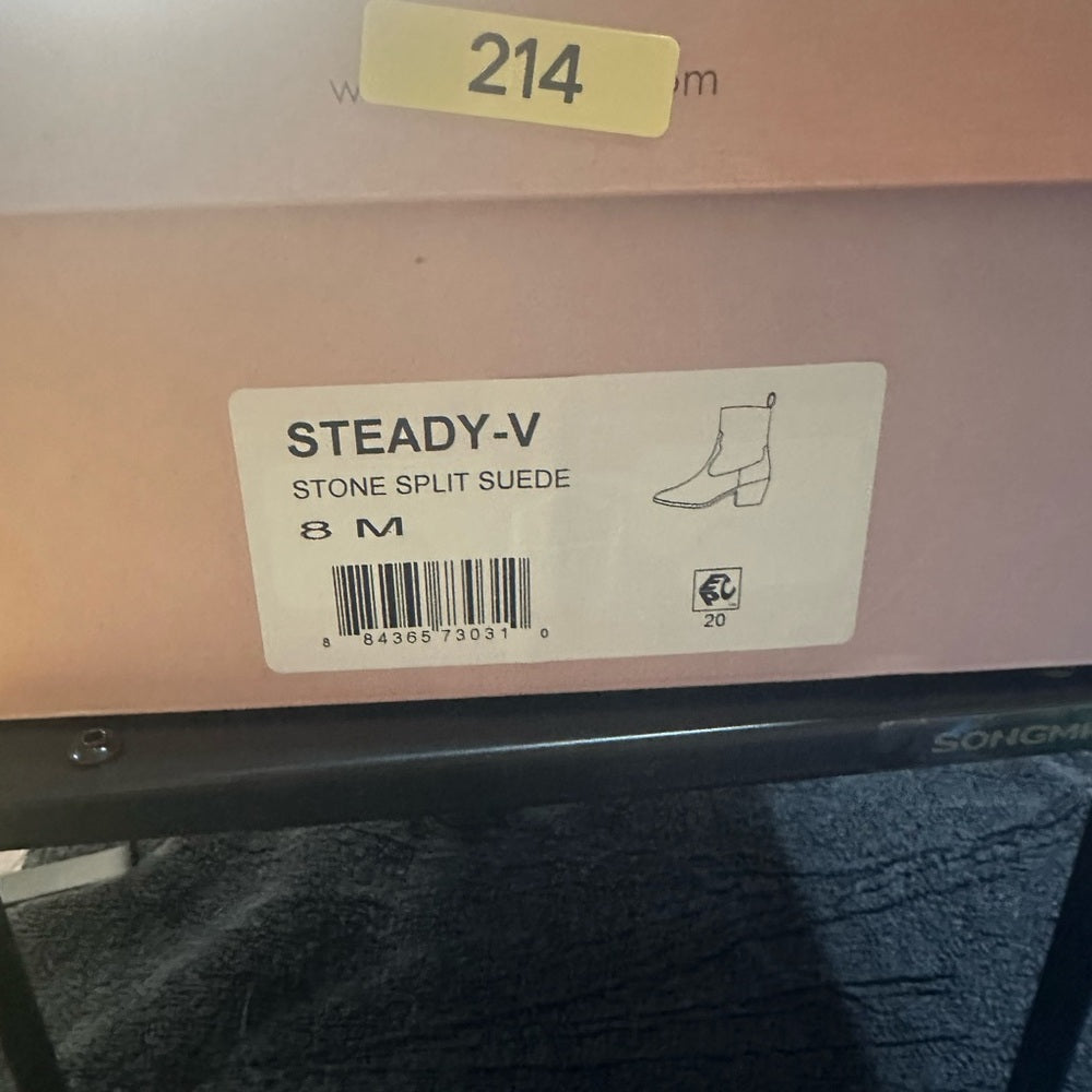 214. NEW SIZE 8 Rugged Gray Heeled Boots with Ankle-Height Design