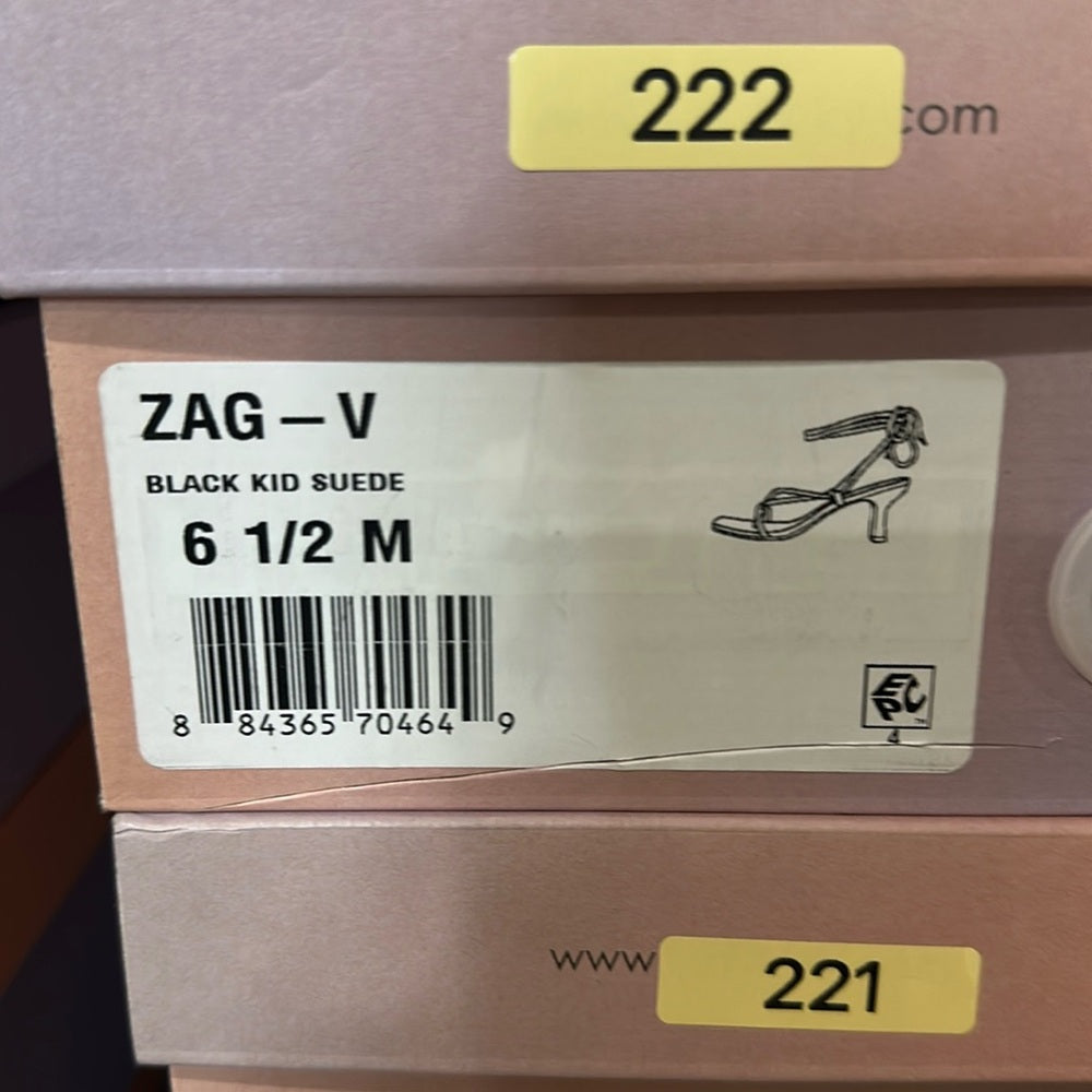 222. NEW 6.5 Black suede Strappy Lace-Up Heels with Kitten Heel